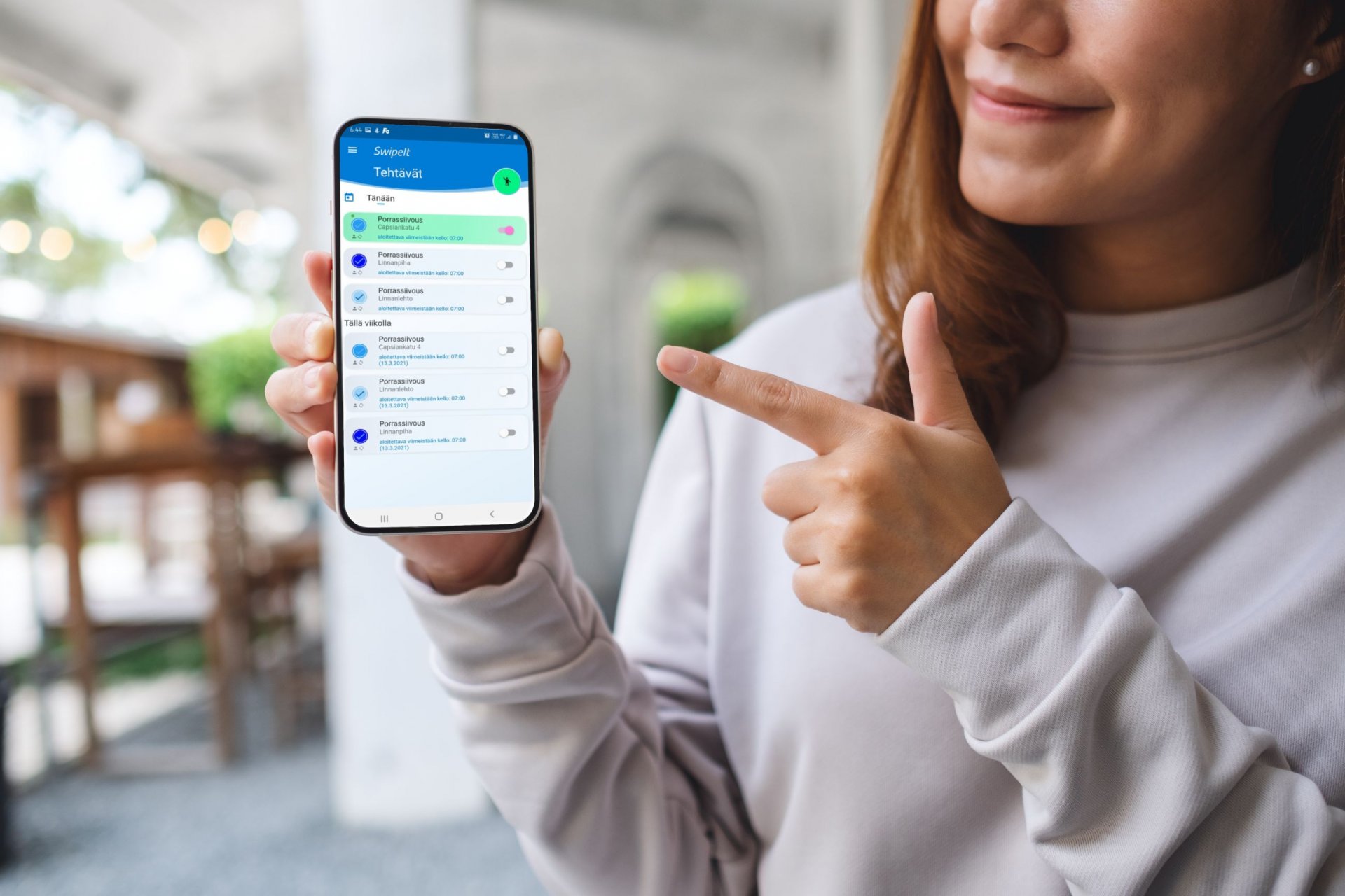 SwipeIt sopii siivousalan, kiinteistöhuollon, rakennusalan ja monien muiden toimialojen käyttöön, koko henkilöstölle. Lue ohesta lisää, miten ohjelma sujuvoittaa yrityksesi arkea ja tee tilaus.
